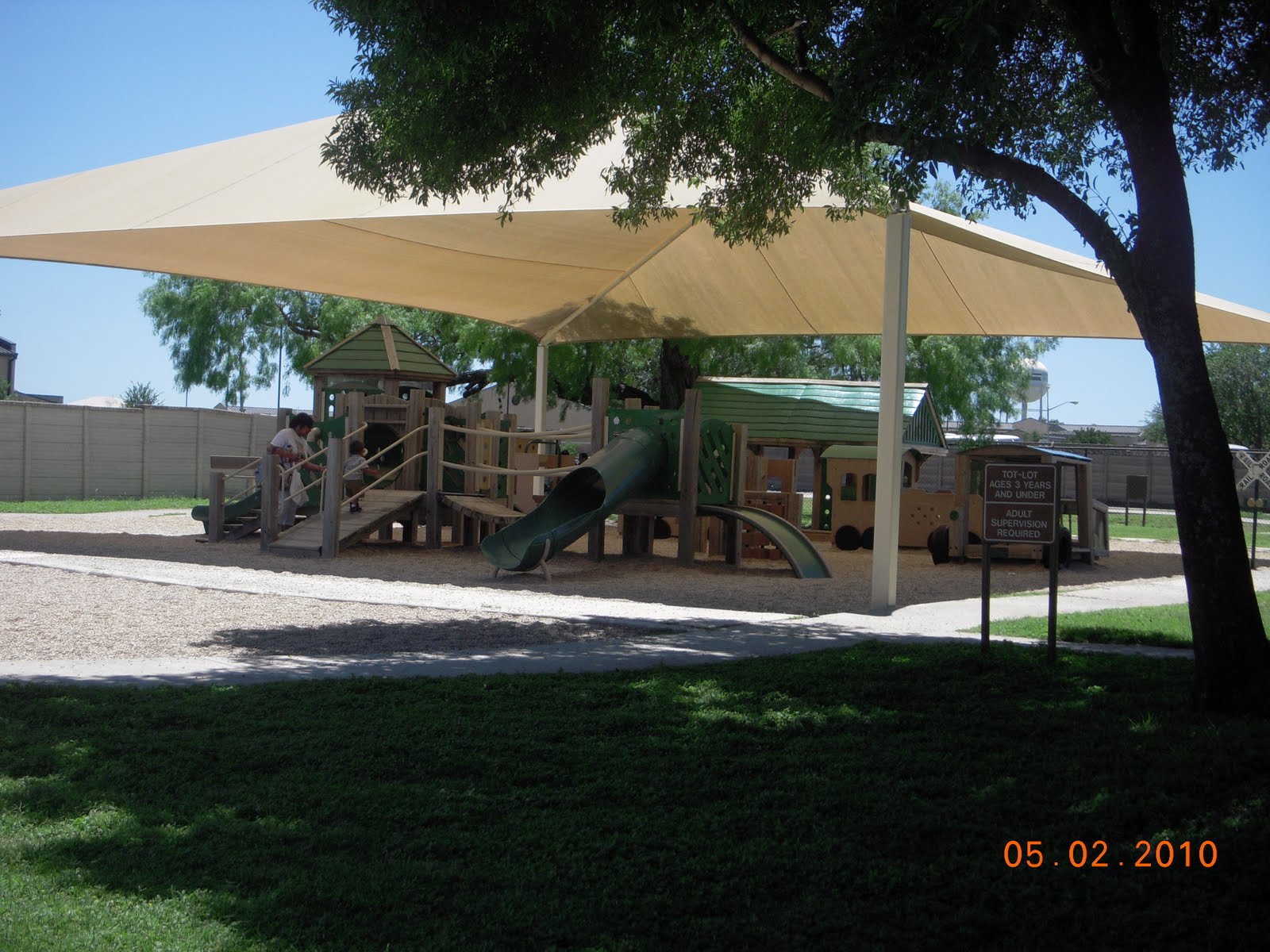 This is at the park that we hung out at when we were on Base. It was so nice they had all the little play areas under the canopies. There were three little areas that were for certain age groups not that it really mattered.
